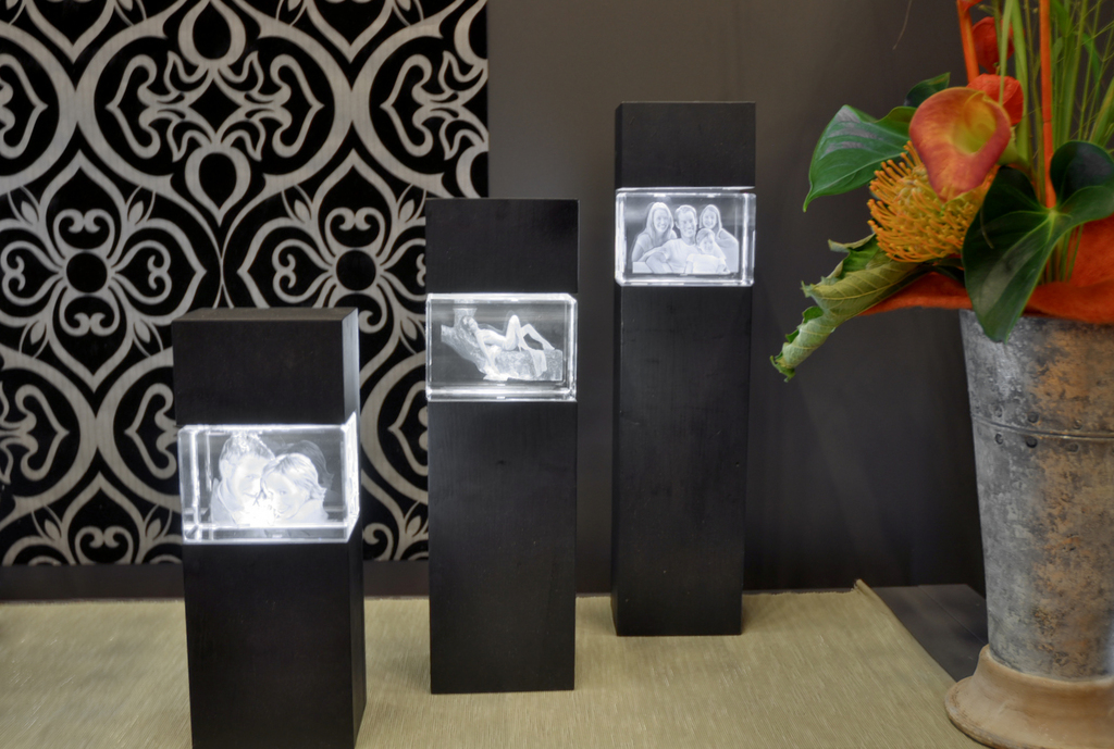 Kommen Sie vorbei und schauen Sie sich unsere Laser-Glas-Galerie an oder bestellen Sie Ihren persönlichen Glasblock direkt unter Looxis-Fotogeschenke